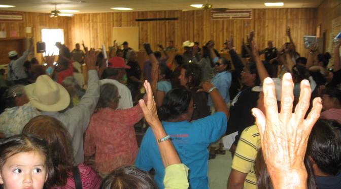 Scene from inside the Bodaway Chapter house after chapter president ordered all cameras and recording devices removed during the vote for the Escalade.