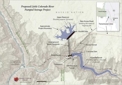 Pumped Hydro Storage LLC from Phoenix proposes to locate a pump storage hydropower on the Lower Colorado River named, Proposed Little Colorado River Pumped Storage Project, shown on this map in relation to Navajo East Rim.