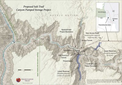 Pumped Hydro Storage LLC from Phoenix proposes to locate a pump storage hydropower named Proposed Salt Trail Canyon Pumped Storage Project shown in this map in relation to Navajo East Rim.